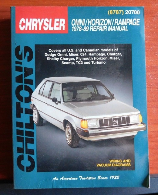 Chilton Repair Manual 8787 Omni Horizon Rampage 1978