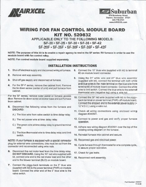 Suburban Furnace Control Module Board Wiring Kit 520840