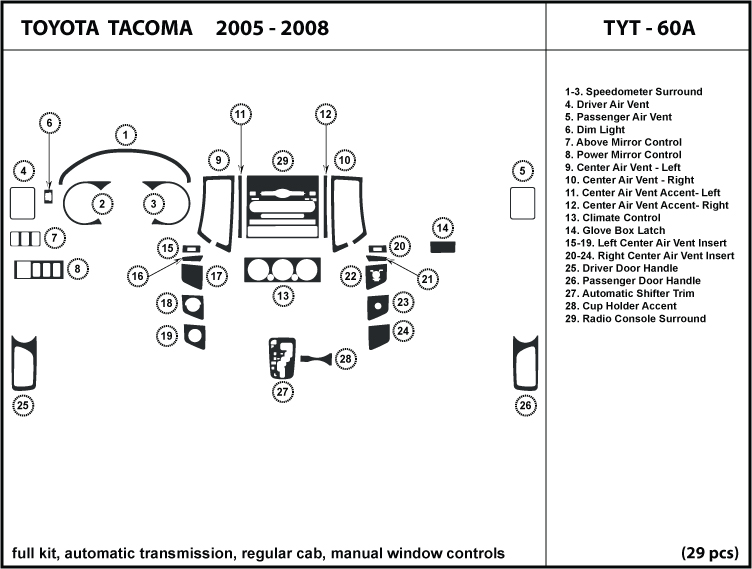 Toyota Tacoma 05 Regular Cab Manual Windows Dash Kit Trim