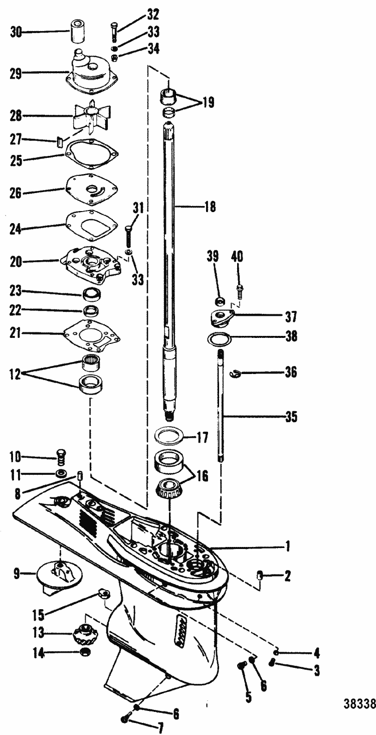 Mercury Marine 40 Hp 4 Cylinder Drive Shaft Housing Assembly Parts