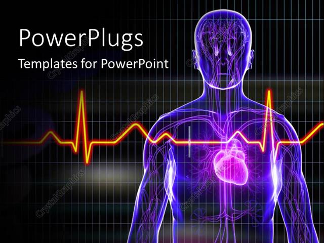 Powerpoint Template Human Anatomy With Heart And Ecg Rays