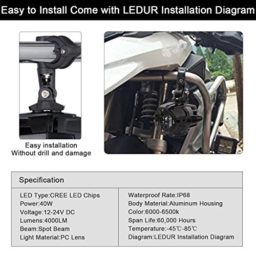 Ledur Auxiliary Lights For Bmw Motorcycle 40w 6000k Spot Driving Fog Lamps