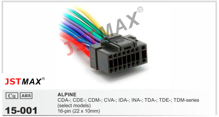 Jstmax Car Dvd Radio Stereo Iso Cable 16 Pin Adapter For