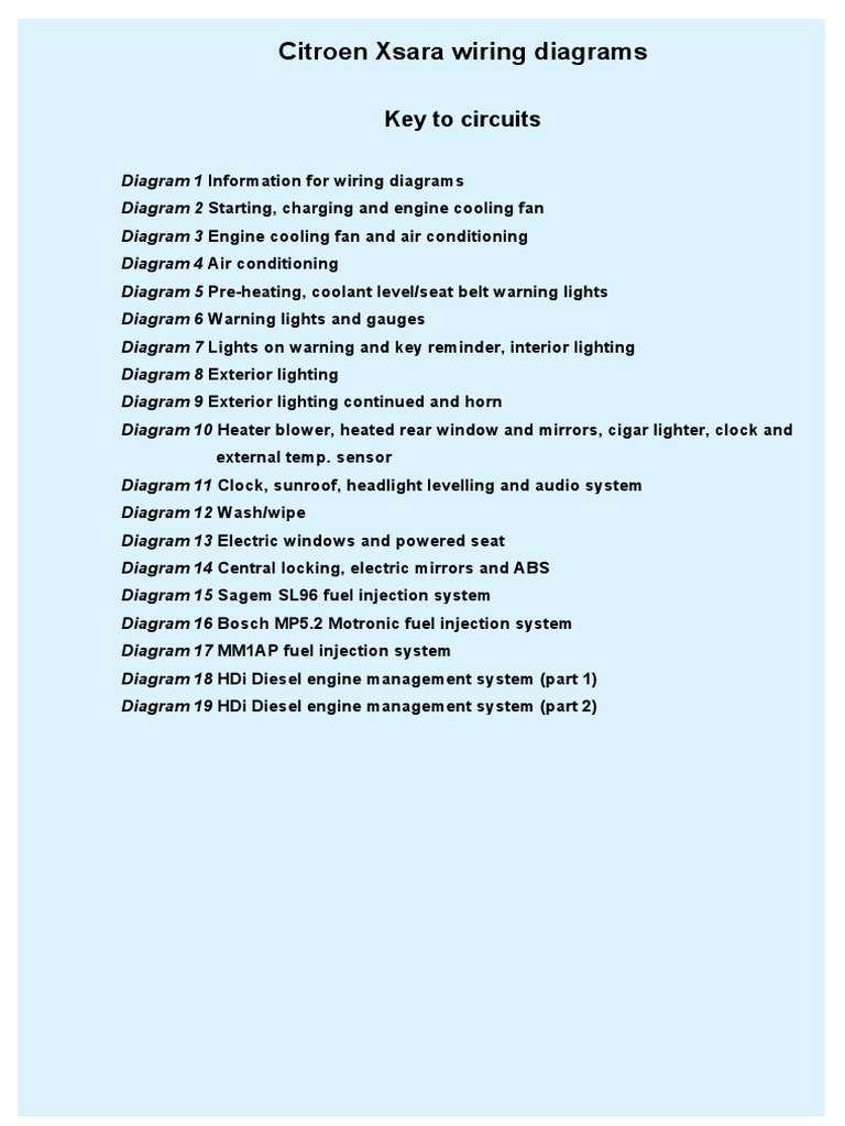 Citroen Xsara Wiring Diagrams