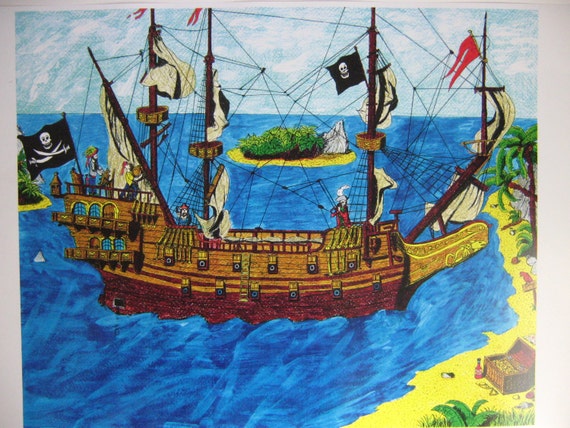 Pirate Ship Poster For Kids Pirate Art Fine Print By Original
