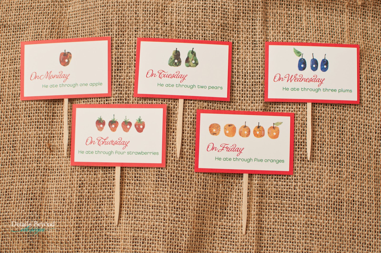 Very Hungry Caterpillar Birthday Party Food Labels With