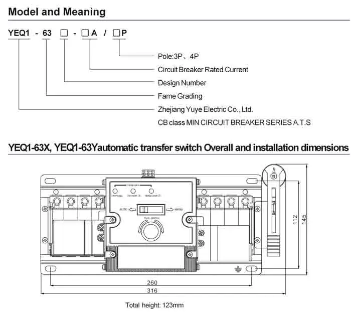 Yuye Yeq-m Cb Class Manual Transfer Switch 400 Amp