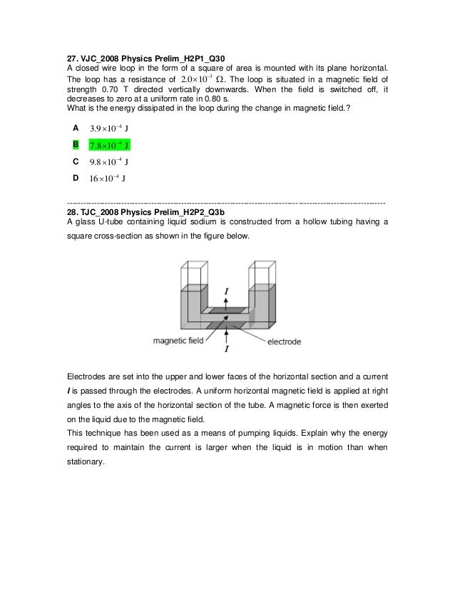 J2 Physics 2008 Prelim Electromagnetic Induction