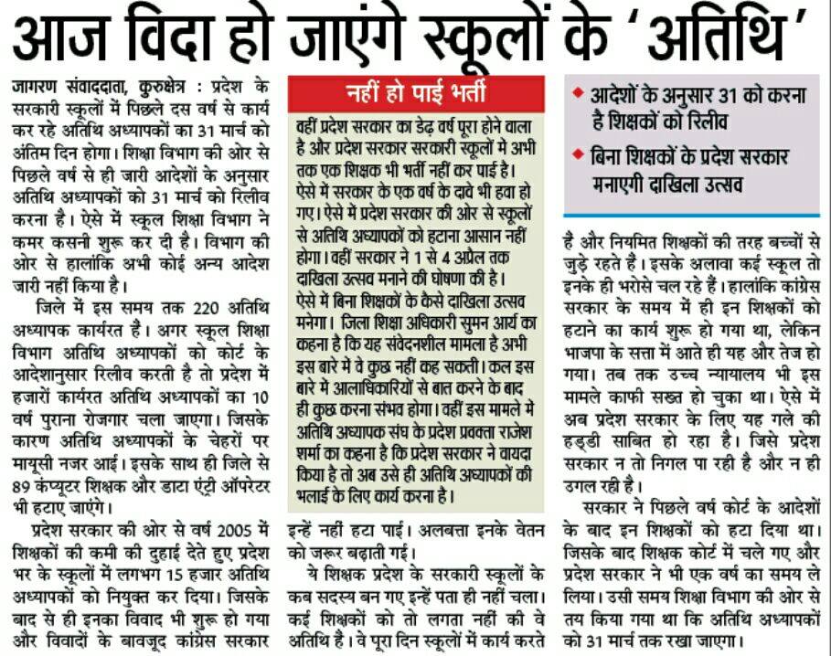 Guest Teacher Haryana Latest News