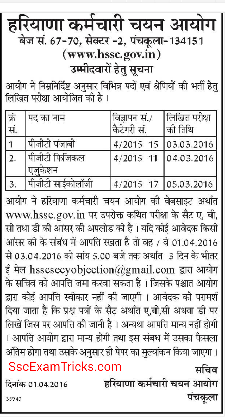 Sscexamtricks Com Hssc Pgt History Final Result 2019 Haryana Pgt Appointment Joining Letter