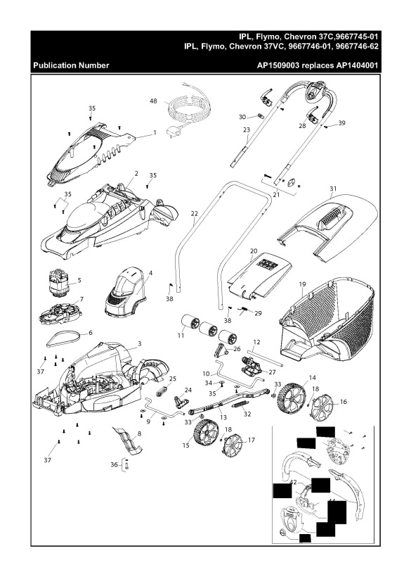 Flymo Chevron 37c 966774501 Lawnmower Product Complete Spare Parts Diagram