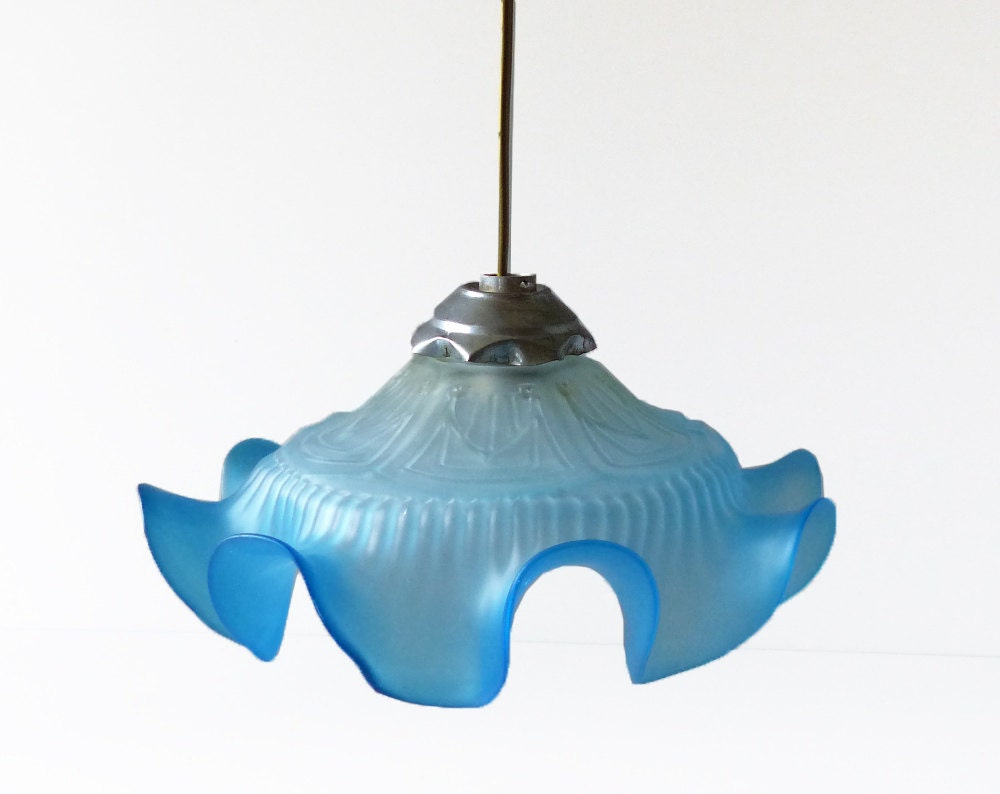 French Vintage Blue Glass Ceiling Lamp Glass Shade