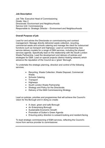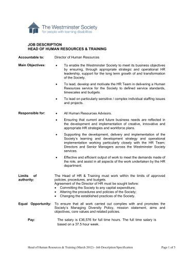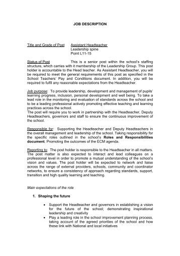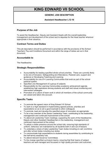 Generic Job Description For Head Of Department