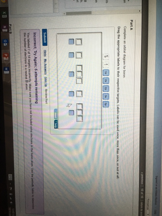 Solved Complete An Orbital Diagram For Boron Drag The App