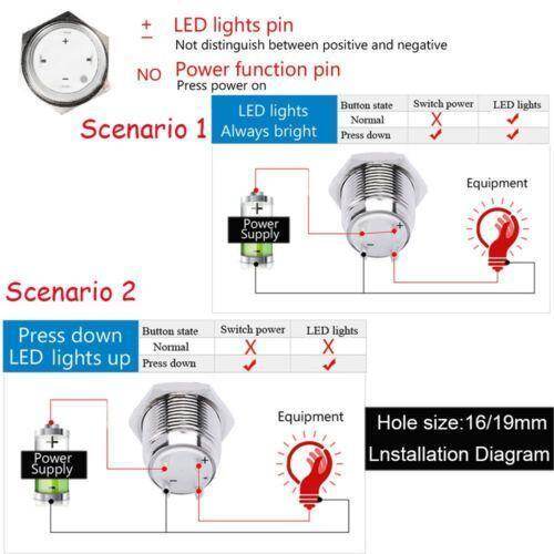 Yakamoz 12mm 1 2 U0026quot 3v Led Light Metal Momentary Push Button