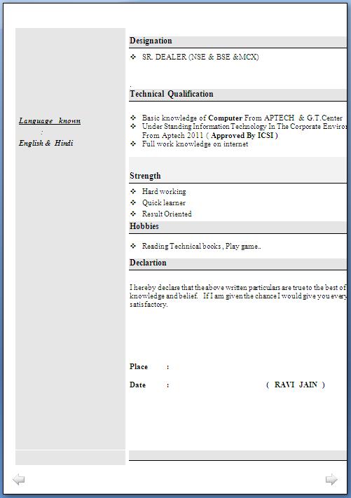 Resume Format For Freshers B Com Free Download Ap
