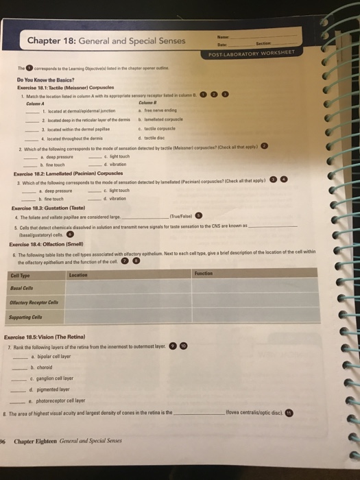 Solved Chapter 18 General And Special Senses Post Labora