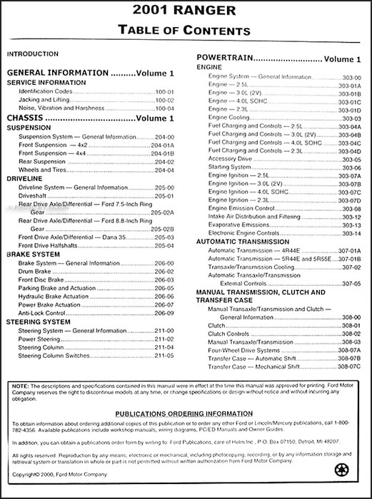 2001 Ford Ranger Repair Shop Manual Original 2 Volume Set