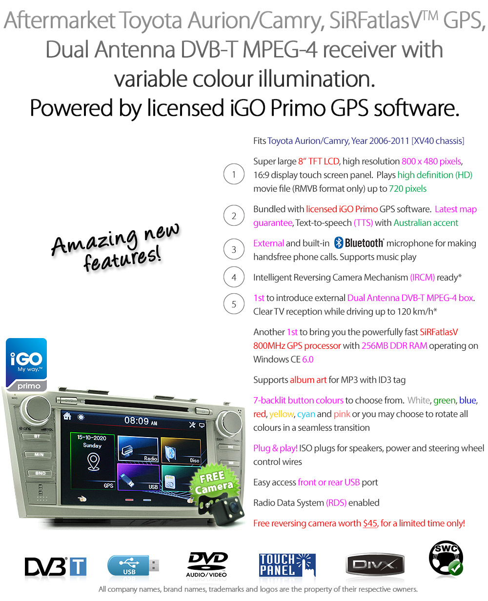 8 U0026quot Toyota Aurion Camry Car Dvd Gps Player Stereo Sat Nav