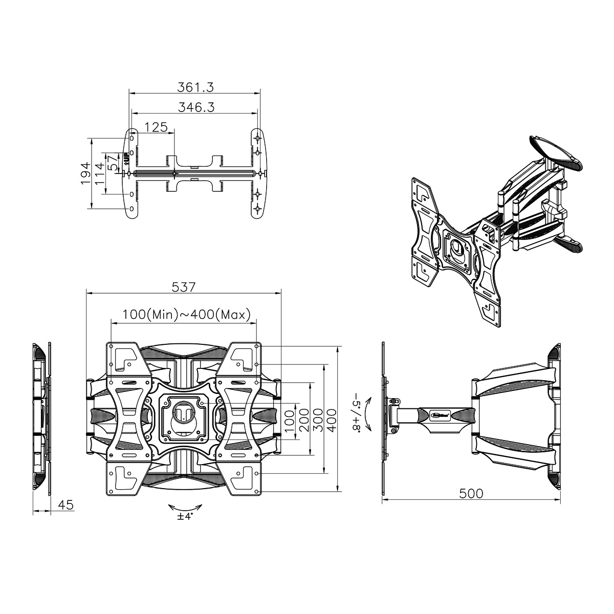 Video Wall Portrait Tv Mount Bracket Fully Adjustable - Fits Sizes 45-70 Inches