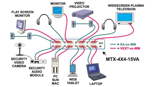Vga Video Matrix Switch 15hd Stereo Audio Router 4x4