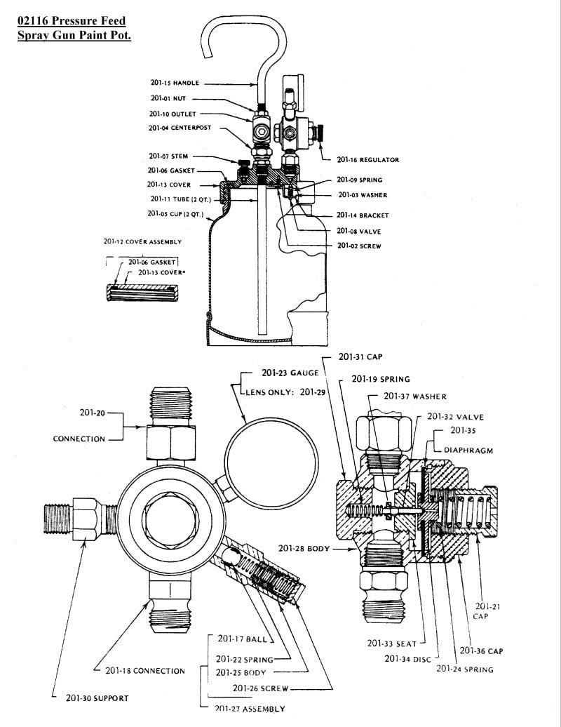 Sip 02116 Pressure Fed Spray Gun Pot Diagram