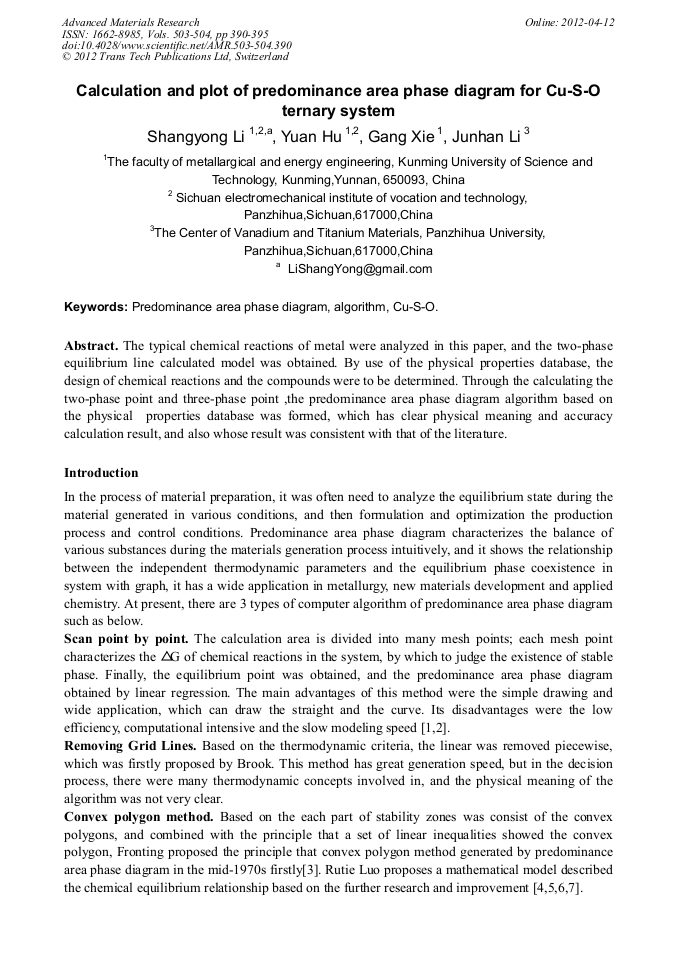 Calculation And Plot Of Predominance Area Phase Diagram